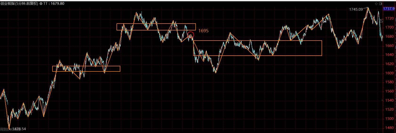 創(chuàng)業(yè)板這里則樂觀的多了,前高附近的中樞震蕩形態(tài),按歐奈爾的習(xí)慣來說,這個構(gòu)型叫“杯柄”,一種強(qiáng)勢形態(tài)??申P(guān)注1600-1640的支撐區(qū)域,適當(dāng)回補(bǔ)倉位。從兩個市場的比較來看,依舊傾向于后續(xù)大行情集中在創(chuàng)業(yè)板,有點類似2013年,創(chuàng)業(yè)板多頭走勢,主板還在探底。
