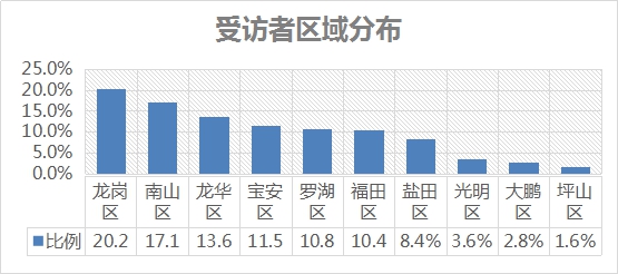 本次調研中受訪者,原特區(qū)內的4個區(qū)的消費者占比為49.8%;女性消費者與男性消費者的比例約為1:1 。