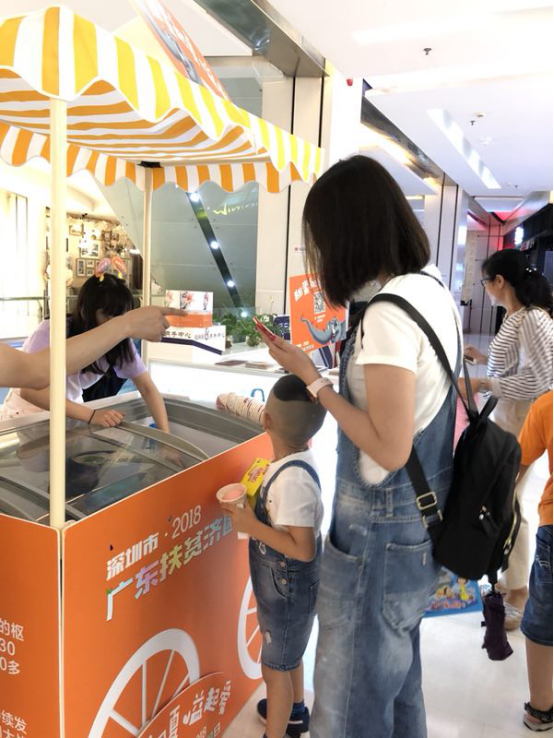 6月23日,“甜蜜初夏 慈善一直在”深圳10大地標(biāo)冰激凌義賣活動(dòng)在在福田星河COCO Park啟動(dòng)。現(xiàn)場(chǎng),很多逛商場(chǎng)的市民掃碼購(gòu)買冰淇淋,為扶貧濟(jì)困活動(dòng)捐款。特別讓志愿者感觸的是,不少家長(zhǎng)帶著小朋友路過,看到是給貧困人們貢獻(xiàn)愛心,紛紛參與進(jìn)來要買冰激凌。