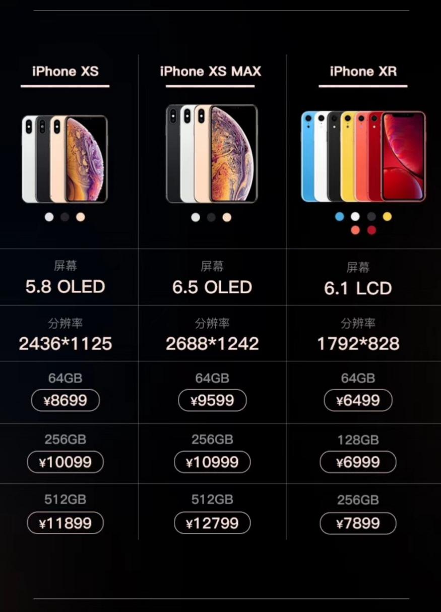 這次的三款新機都以“iPhone X”為命名基礎,可以看做是X的半代升級版本,分別叫做iPhoneXR、iPhoneXS、iPhoneXS Max,三者主要區(qū)別在屏幕大小上:5.8英寸、6.1英寸和6.5英寸。