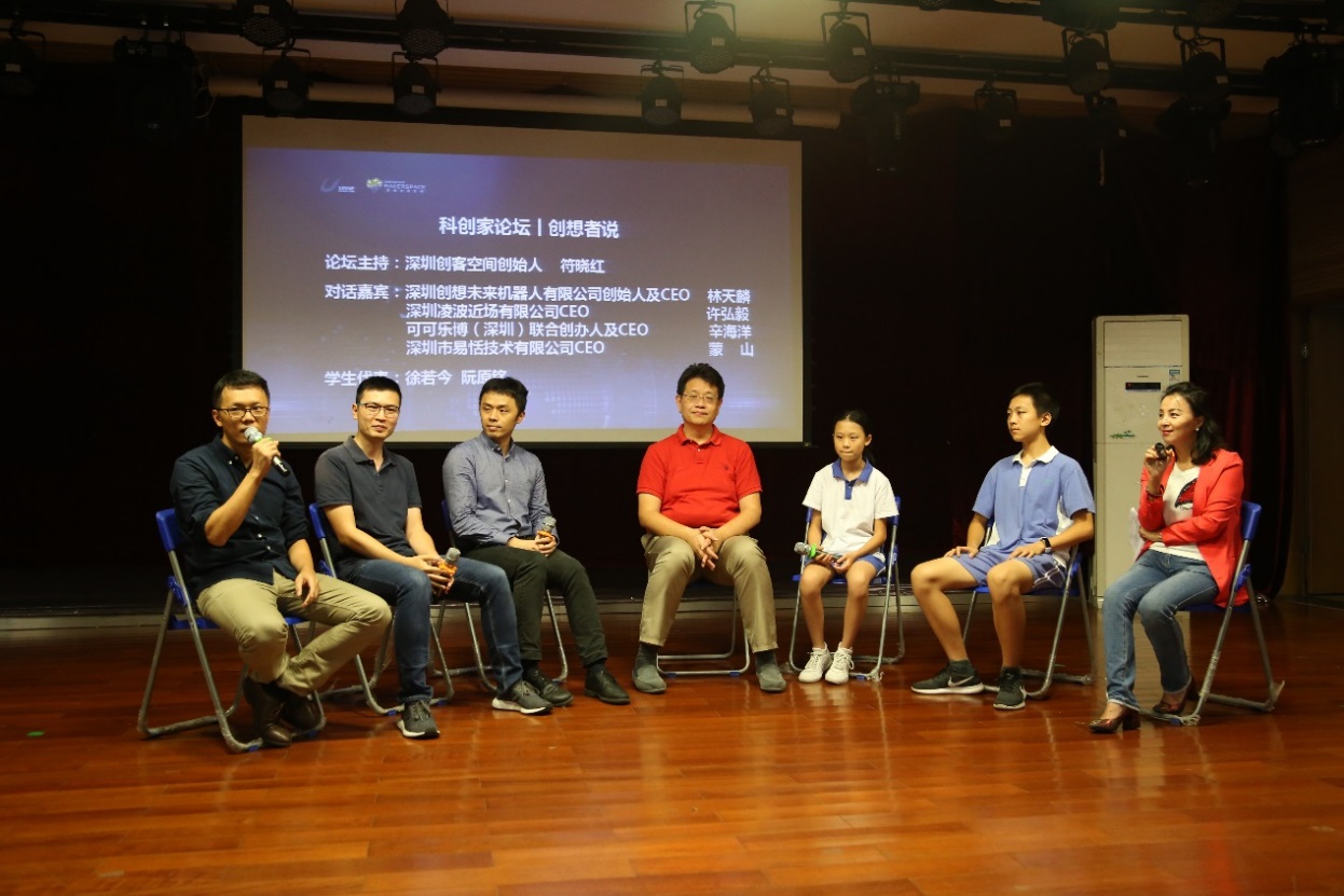 活動(dòng)以“人工智能——科幻未來”為主題,邀請(qǐng)到了人工智能領(lǐng)域的科學(xué)家,優(yōu)秀創(chuàng)業(yè)者等多位嘉賓通過主題分享、論壇對(duì)話以及產(chǎn)品展示體驗(yàn)等形式,給師生們帶來了一場(chǎng)人工智能的知識(shí)分享盛宴。香港中文大學(xué)深圳研究院眾創(chuàng)中心的人工智能創(chuàng)新團(tuán)隊(duì)亮相本次活動(dòng),分別是致力于機(jī)器人操作系統(tǒng) (ROS)的產(chǎn)品化技術(shù)研發(fā)和生態(tài)建設(shè),為高校及企業(yè)提供 ROS課程及技術(shù)解決方案的“深圳創(chuàng)想未來機(jī)器人有限公司”;專注于 STEAM教育的教育科技,致力于透過靈感和科技的有機(jī)結(jié)合,將最新的理念和技術(shù)帶入 STEAM教育領(lǐng)域的“可可樂博(深圳)科技有限公司”;致力于AI語(yǔ)音領(lǐng)域技術(shù)研發(fā),利用優(yōu)于行業(yè)、準(zhǔn)確率大于99.5%的聲紋識(shí)別算法,將人工智能、生物辨識(shí)與復(fù)雜行業(yè)場(chǎng)景進(jìn)行深度融合的“深圳市聲揚(yáng)科技有限公司”。分別在活動(dòng)中做了精彩的主題演講、學(xué)生互動(dòng)及產(chǎn)品展示。