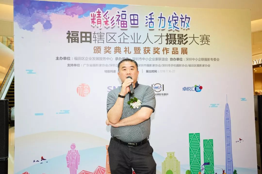 曾石泉主席在致辭中表示:“本次攝影展‘精彩福田·活力綻放’攝影大賽所涉及的門類較多,既包括了專業(yè)攝影,也包括了手機(jī)攝影,有風(fēng)光攝影也有紀(jì)實(shí)攝影,攝影水平較高。希望通過(guò)此次攝影展能夠很好的普及攝影藝術(shù),壯大攝影隊(duì)伍,為企業(yè)攝影家提供一個(gè)良好的學(xué)習(xí)、交流的平臺(tái)。”