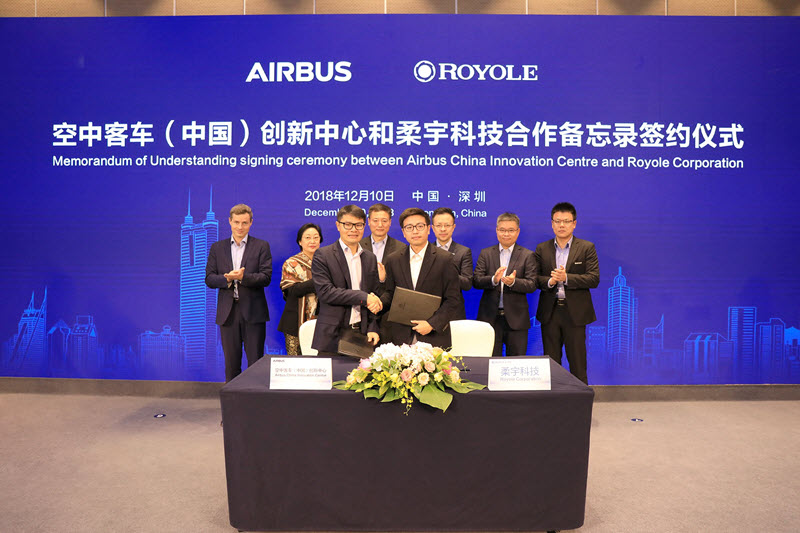 據(jù)了解,早在2018年12月,柔宇科技有限公司與空中客車(中國)創(chuàng)新中心在深圳正式簽署戰(zhàn)略合作備忘錄,雙方將就柔性電子技術在飛機客艙等場景的應用和商業(yè)合作開展研究,探索柔性顯示、柔性傳感在客艙等場景內的應用,在客艙環(huán)境、安全性、節(jié)能等方面做進一步提升,為乘客打造未來化、數(shù)字化、個性化的乘機體驗。