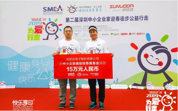 值得一提的是,本屆“為愛行走”活動(dòng)的愛心冠名企業(yè)——中小企聯(lián)常務(wù)副會(huì)長(zhǎng)、欣旺達(dá)電子股份有限公司董事長(zhǎng)王威現(xiàn)場(chǎng)向中小企聯(lián)晴娃娃慈善基金捐款15萬(wàn)元人民幣,并對(duì)本次活動(dòng)提供了的全程贊助支持。