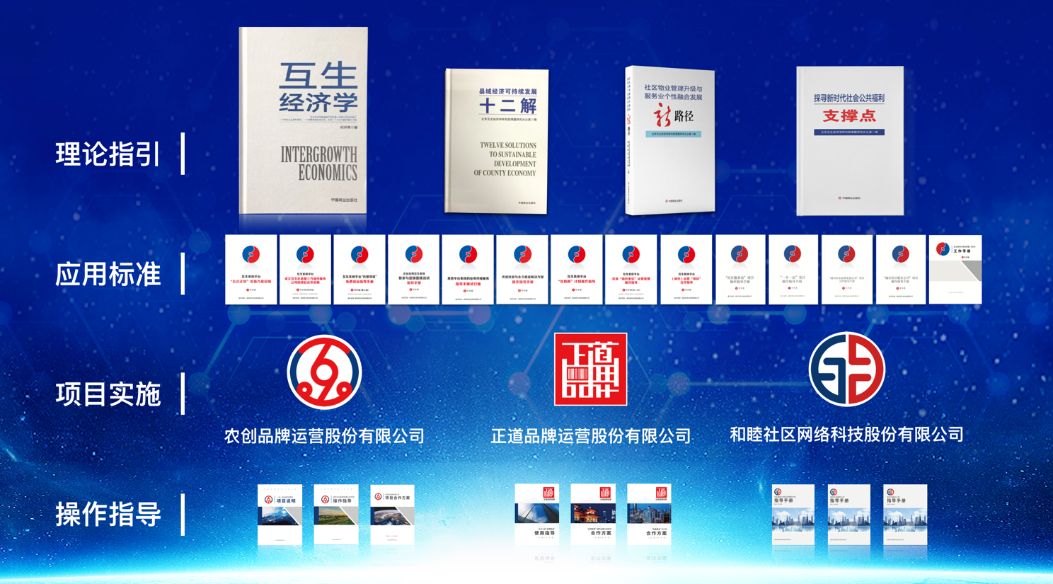 會上,北京互生經濟學研究院發(fā)布了“農創(chuàng)新抓手”“社區(qū)新范本”,以及由《互生經濟學》著作人、北京互生經濟學研究院院長何開秀教授領導課題研究辦公室專項課題組所著述的《縣域經濟可持續(xù)發(fā)展十二解》《社區(qū)物業(yè)管理升級與服務業(yè)個性融合發(fā)展新路徑》《探尋新時代社會公共福利支撐點》幾本新書。農創(chuàng)品牌運營股份有限公司、正道品牌運營股份有限公司、和睦社區(qū)網絡科技股份有限公司對農創(chuàng)、和睦、正道三個項目做了解讀以及三個項目的國內應用者進行了應用成果分享。