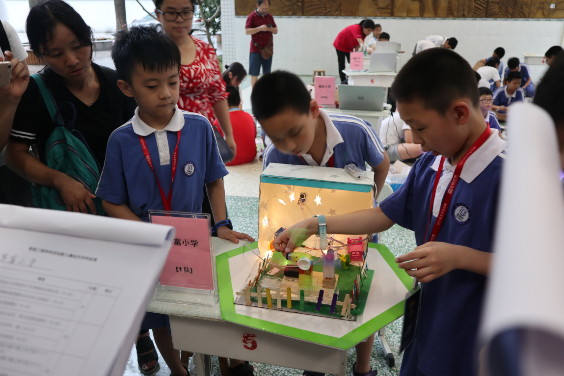 路演階段更是精彩紛呈,如:荔園小學(xué)通新嶺校區(qū)的“廚用智能感應(yīng)水龍頭”、明德實(shí)驗(yàn)學(xué)校碧海校區(qū)的“天臺智能晾曬房”、上步小學(xué)的“智能鼠標(biāo)”、華富小學(xué)的“室內(nèi)照明監(jiān)測盒”等眾多創(chuàng)意新奇的作品。