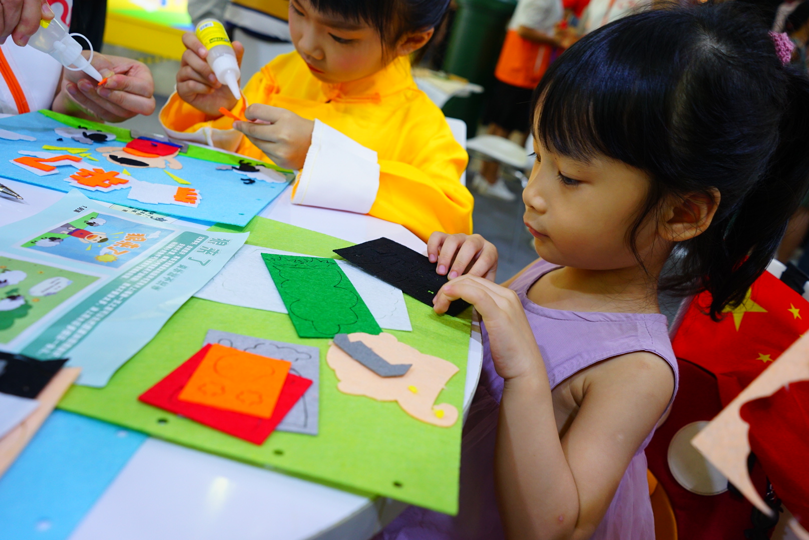 在“手工布書制作”體驗(yàn)區(qū),志愿者耐心地引領(lǐng)兒童制作專屬自己的一本不織布手工書,感受動(dòng)手及閱讀帶來(lái)的另一種快樂。