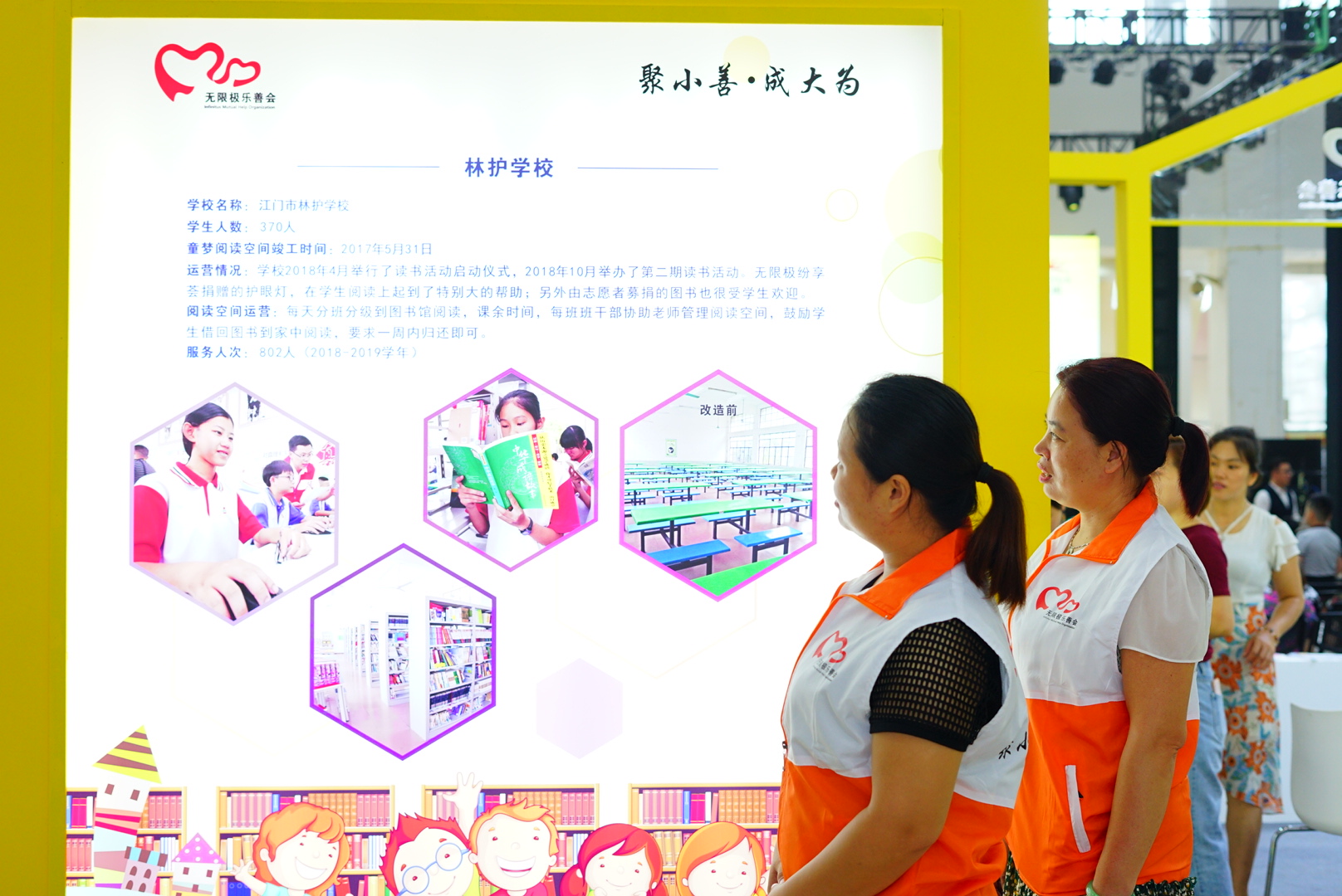 在南國(guó)書香節(jié)江門分會(huì)場(chǎng)的場(chǎng)館中央,“黃色小屋”尤其吸人眼球。在項(xiàng)目展示上,無(wú)限極樂善會(huì)多年來(lái)一直關(guān)注鄉(xiāng)村兒童的閱讀教育問題,自2015年起,攜手江門市相關(guān)政府部門發(fā)起了童夢(mèng)閱讀空間公益項(xiàng)目,致力于兒童閱讀空間建設(shè)及校內(nèi)閱讀推廣工作。在展區(qū),可以看到五所童夢(mèng)閱讀空間的運(yùn)營(yíng)等基本情況。