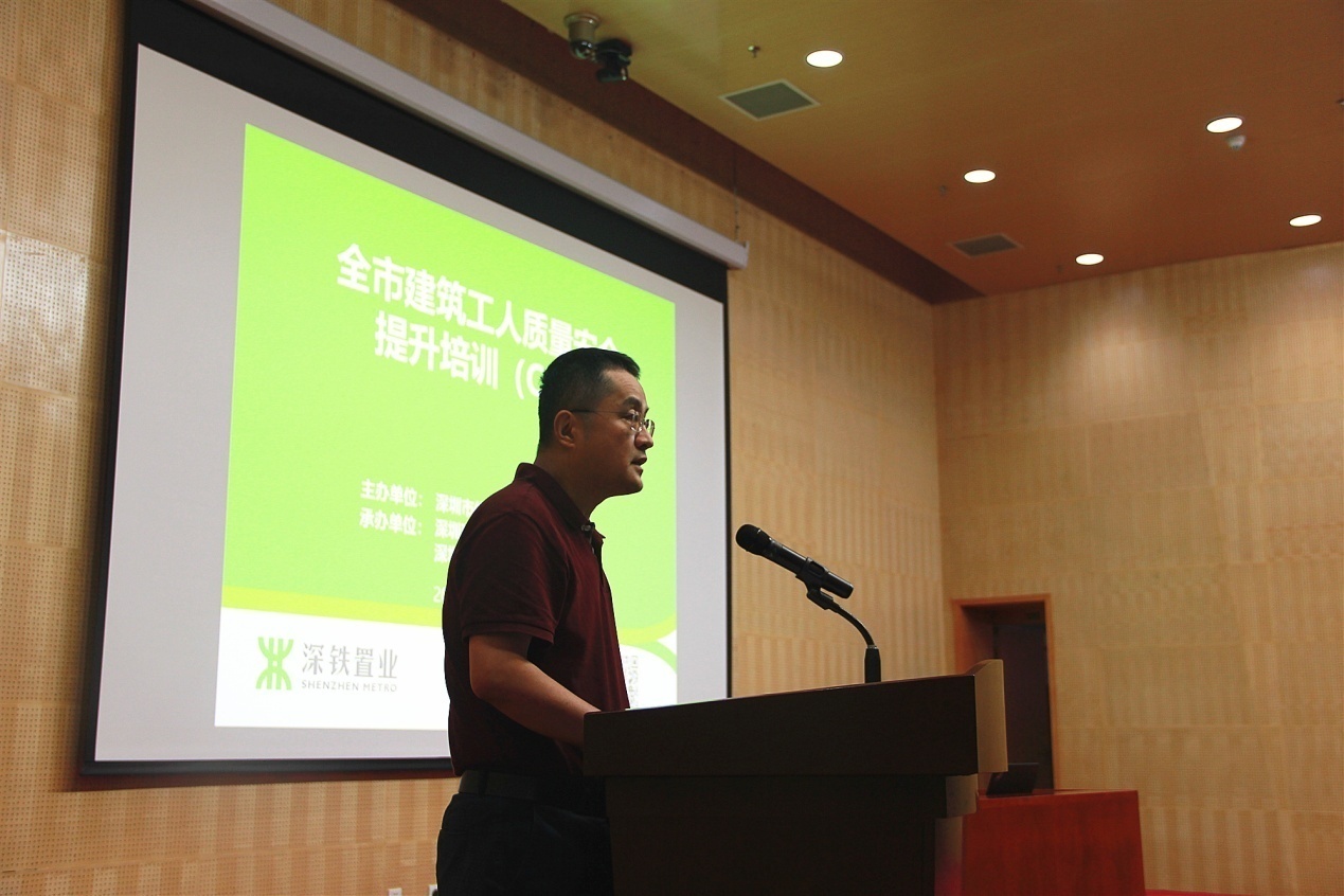 深圳市住房和建設局建筑市場和招標投標監(jiān)管處副處長董亮首先對一線工人表示親切的慰問,并對深圳地鐵置業(yè)集團積極響應政府號召,扎實落實工人安全質量培訓工作表示肯定。本次培訓是市住建局建筑工人質量安全培訓提升工作方案的重要組成部分,接下來將在全市全面推行A、B、C、D、E五類培訓。由政府、企業(yè)、協(xié)會、培訓機構四方力量共同攜手推進崗前崗后、場內(nèi)場外、線上線下培訓教育工作。今后,未經(jīng)過系統(tǒng)教育培訓的工人將禁止進入深圳市建筑市場。