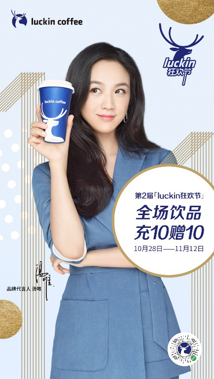 本次2019年雙11第2屆luckin狂歡節(jié),長達16天的“充10贈10”的超大力度優(yōu)惠,同時疊加周邊產(chǎn)品88折、“瑞幸X優(yōu)酷特惠套餐”等多重活動。不但優(yōu)惠力度堪稱最大,同時,包括湯唯、肖戰(zhàn)和馮唐等各種明星名人IP聯(lián)名潮流周邊產(chǎn)品的參與打call,也讓這屆luckin狂歡節(jié)異彩紛呈,堪稱國內(nèi)咖啡連鎖行業(yè)內(nèi)最受矚目,也是飲品行業(yè)力度最大的雙11促銷。
