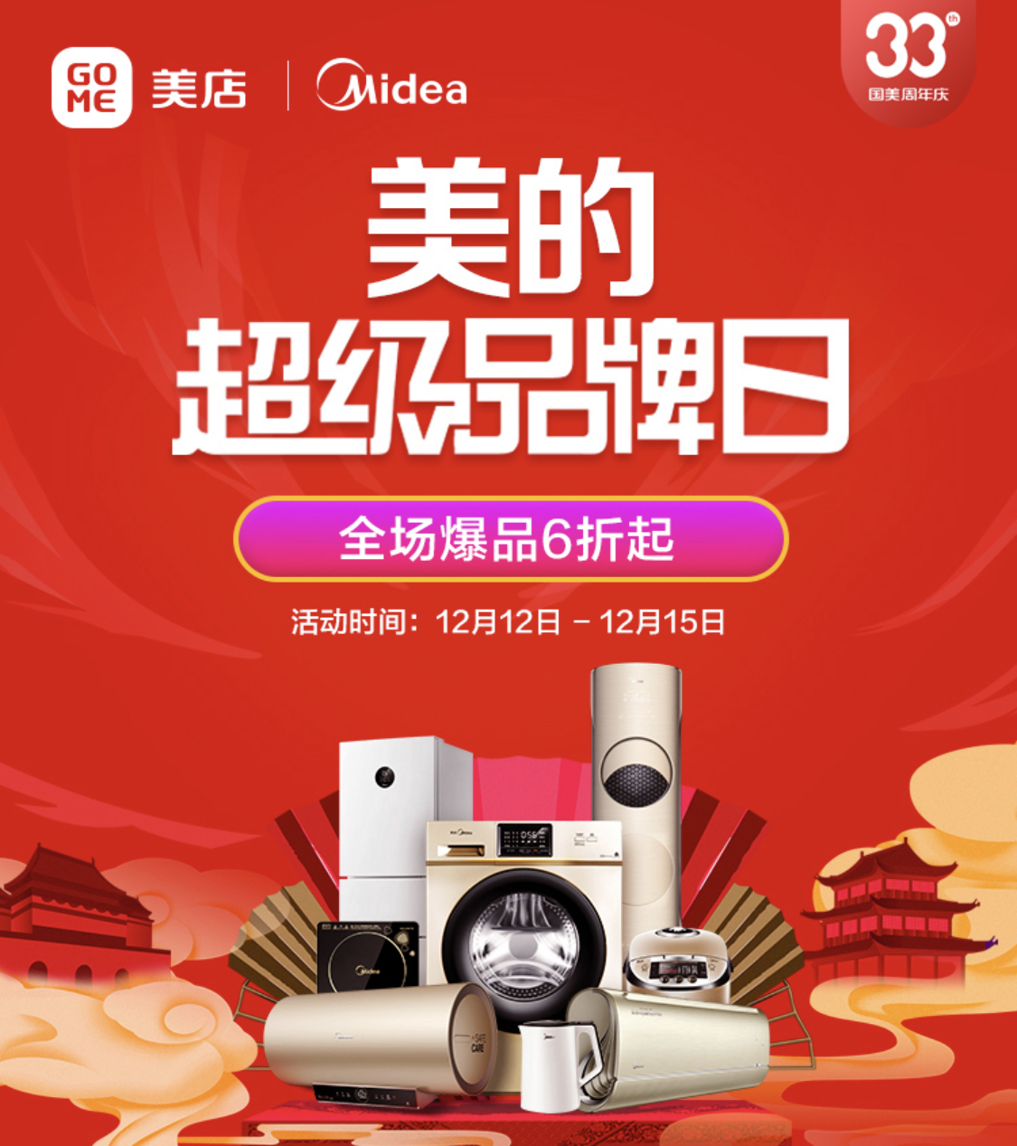 作為多元化家電產(chǎn)品品牌美的,在本次超級品牌日活動中更是給予了10余個品類的數(shù)十款產(chǎn)品大幅的優(yōu)惠力度。12月12日至15日期間,美的爆品,全場6折起,大家電最高直降1000多元,小電器返券更可實現(xiàn)“0元購”,力度空前。
