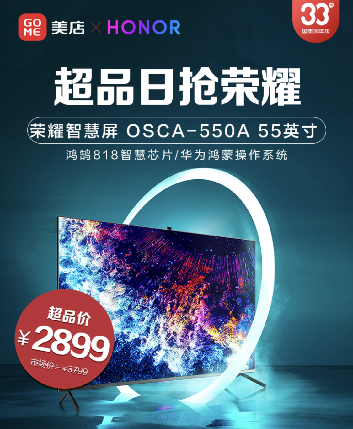 除榮耀手機外,榮耀今年全新推出的榮耀55英寸智慧屏在本次超級品牌日期間直降900元,僅售2899,成為歷史新低價。活動截止至12月15日,買榮耀產(chǎn)品就趁現(xiàn)在。