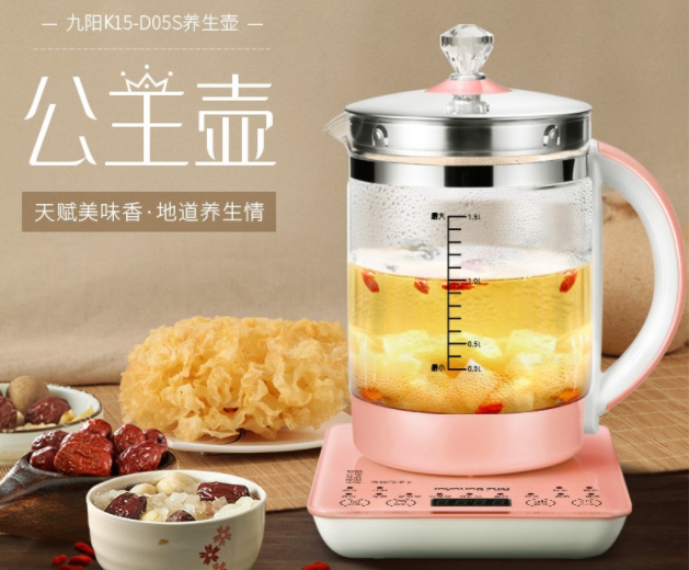 九陽(Joyoung) K15-D05S養(yǎng)生壺食品級(jí)高硼硅玻璃粉紅色