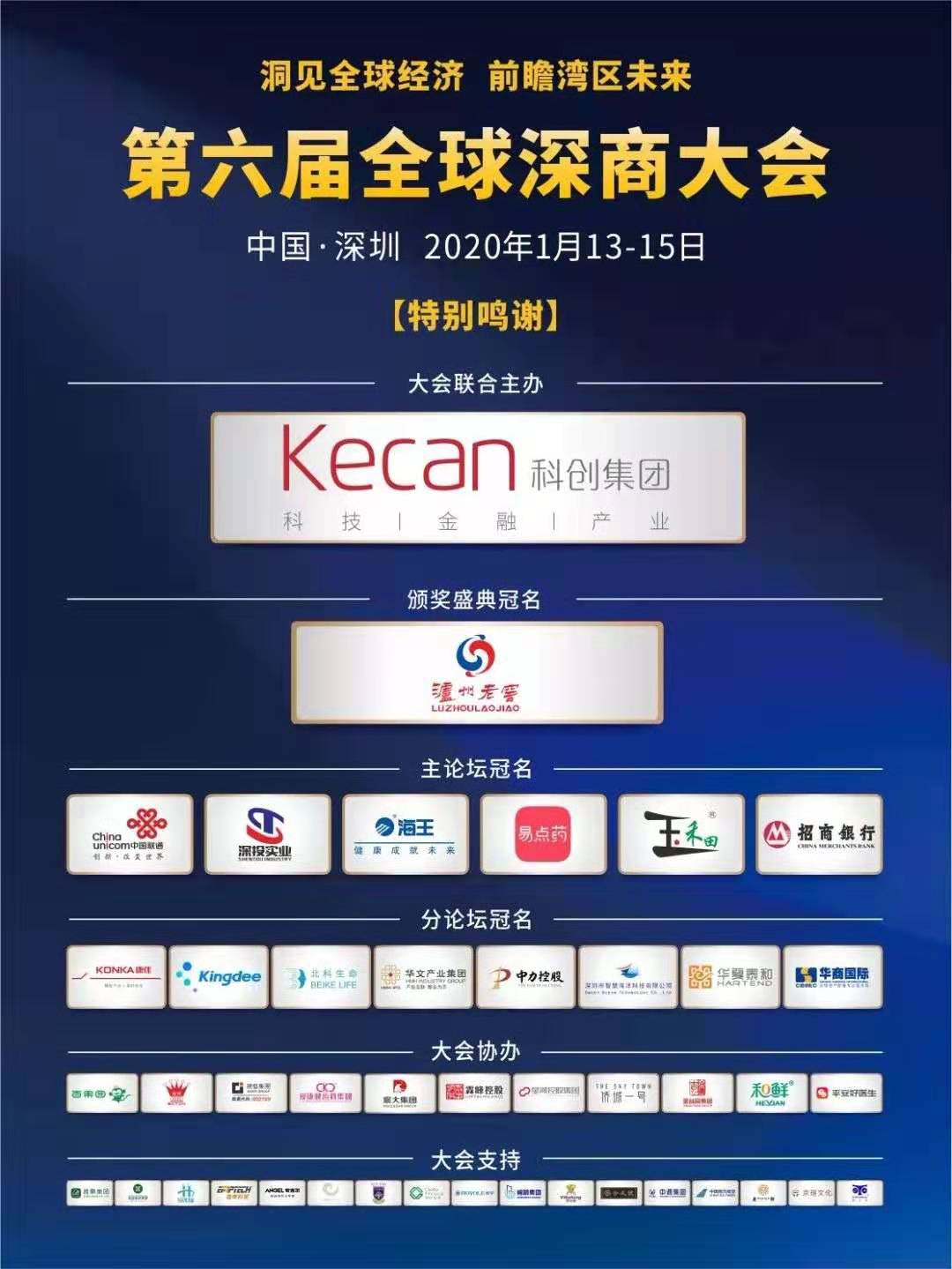 深圳新聞網(wǎng)2020年1月14日訊 1月13日晚,由深圳市商務(wù)局指導(dǎo),深圳市深商總會、深圳市商業(yè)聯(lián)合會主辦,順德區(qū)人民政府聯(lián)合主辦,瀘州老窖股份有限公司冠名的第六屆全球深商大會頒獎盛典以及深投實(shí)業(yè)集團(tuán)(深圳)有限公司冠名的“洞見全球經(jīng)濟(jì),前瞻灣區(qū)未來”論壇在保利劇院開幕。