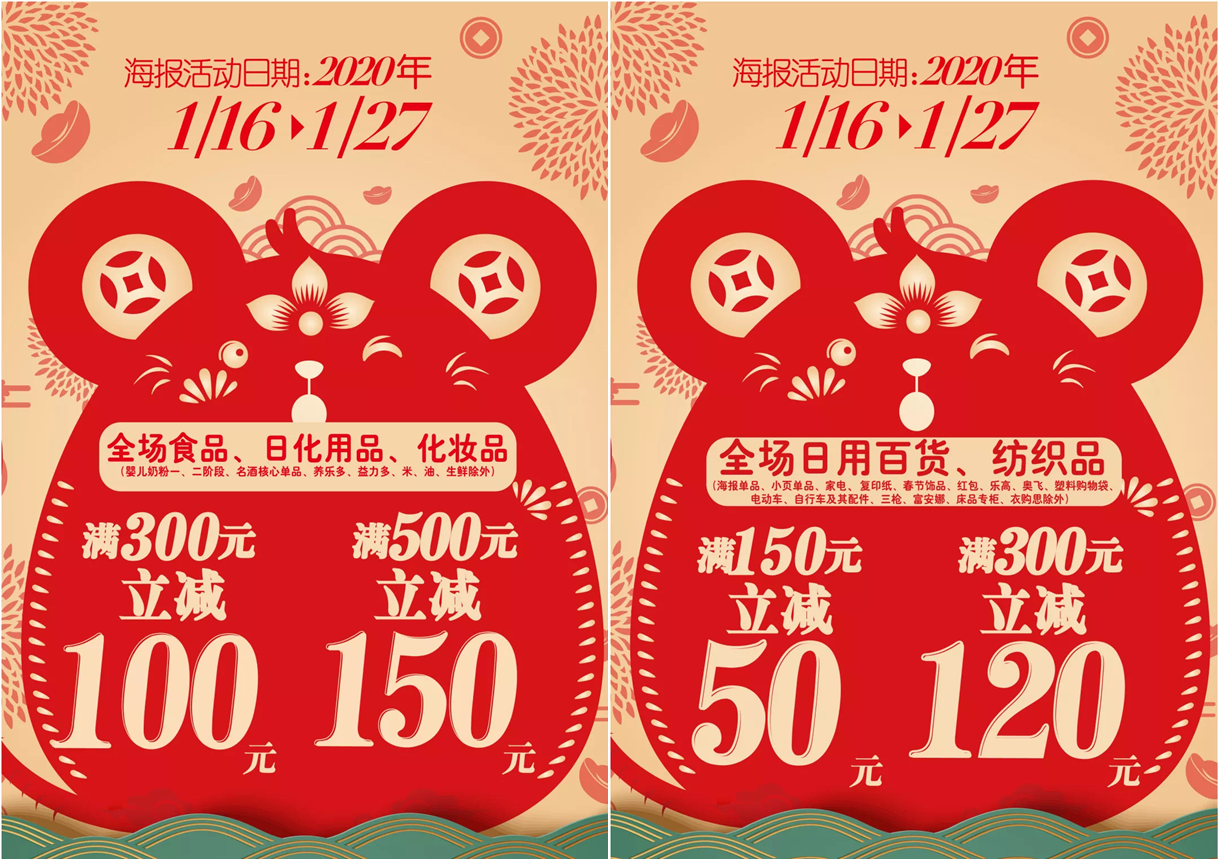 1月16日至1月27日,家樂福華南區(qū)全場(chǎng)食品、日化用品、化妝品滿300元立減100元,滿500元立減150元;全場(chǎng)日用百貨、紡織品(除家電)滿150元立減50元。細(xì)則請(qǐng)見家樂福店內(nèi)信息板或洽詢工作人員。
