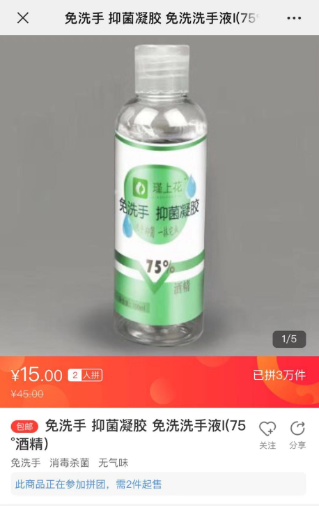 春節(jié)假期進(jìn)入尾聲后,有少部分工廠陸續(xù)復(fù)工。其中有一家來著于蘇寧“拼工廠”的河北企業(yè)與蘇寧拼購?fù)献?,開足馬力,全力生產(chǎn)酒精含量為75%的免洗手抑菌凝膠。據(jù)蘇寧拼購相關(guān)負(fù)責(zé)人介紹:“蘇寧將根據(jù)最近疫情消費數(shù)據(jù)指導(dǎo)該‘拼工廠’生產(chǎn),預(yù)估未來幾天銷量,讓工廠效率達(dá)到最大?!睋?jù)悉,該款“75%免洗手抑菌凝膠”商品僅2月2日上半日便拼出3萬單。河北“拼工廠”負(fù)責(zé)人表示,目前產(chǎn)能能達(dá)到日均20萬瓶。