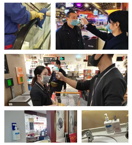 在營業(yè)現(xiàn)場,天虹要求各門店對營業(yè)現(xiàn)場進(jìn)行疫情防控管理,包括對電梯、服務(wù)臺、收銀臺等與顧客接觸頻繁的區(qū)域進(jìn)行不定期消毒,并記錄在案;在服務(wù)臺、休息區(qū)、洗手間等位置增加擺放免洗洗手液,供工作人員和顧客隨時取用。