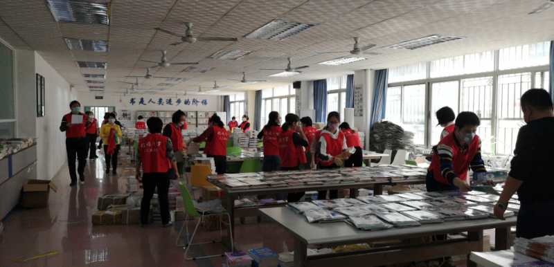 在課室、在體育場、在走廊,甚至就在學(xué)校的馬路邊,深圳郵政人與老師們一起,將一份份承載著知識與希望的課本分類擺放、認(rèn)真核對,揀書、裝袋、打包、貼單、搬運(yùn),一個(gè)個(gè)環(huán)節(jié)銜接默契。