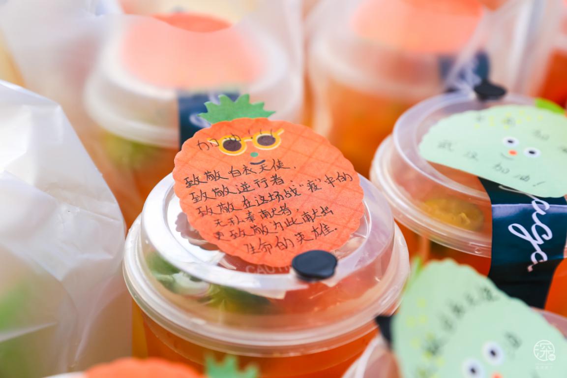 當(dāng)然除了熱心市民,來(lái)獻(xiàn)愛心的還有卓悅INTOWN購(gòu)物中心內(nèi)的商戶:瑞幸咖啡、麥當(dāng)勞、太平洋咖啡、CoCo都可、湊湊、gaga鮮語(yǔ)、HUN混果汁、享甜、Bangs Burger燕遇、辣可可現(xiàn)炒黃牛肉、旬野菜在知道這次活動(dòng)后,紛紛主動(dòng)提供食物或飲品,給疫情期間始終奮斗在一線的服務(wù)人員們,他們值得我們好好愛著。