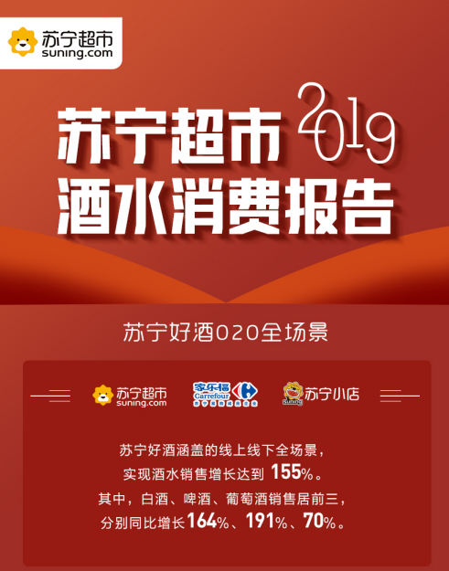 深圳新聞網(wǎng)2020年3月20日訊 昨日,蘇寧超市發(fā)布2019年度酒水消費(fèi)報(bào)告。數(shù)據(jù)顯示,2019年,蘇寧好酒全渠道銷售同比增長(zhǎng)155%。其中,白酒、啤酒、葡萄酒銷售分別同比增長(zhǎng)164%、191%、70%。縱觀整年,家樂(lè)福、飛天茅臺(tái)酒、全場(chǎng)景等成2019年蘇寧酒水關(guān)鍵詞,這也進(jìn)一步凸顯了蘇寧超市酒水生態(tài)圈建設(shè)的卓越成效。