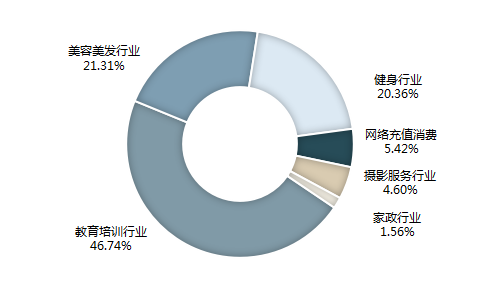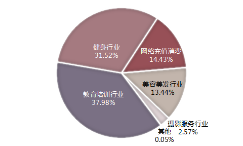 圖52019年預(yù)付式消費(fèi)各行業(yè)投訴量占比