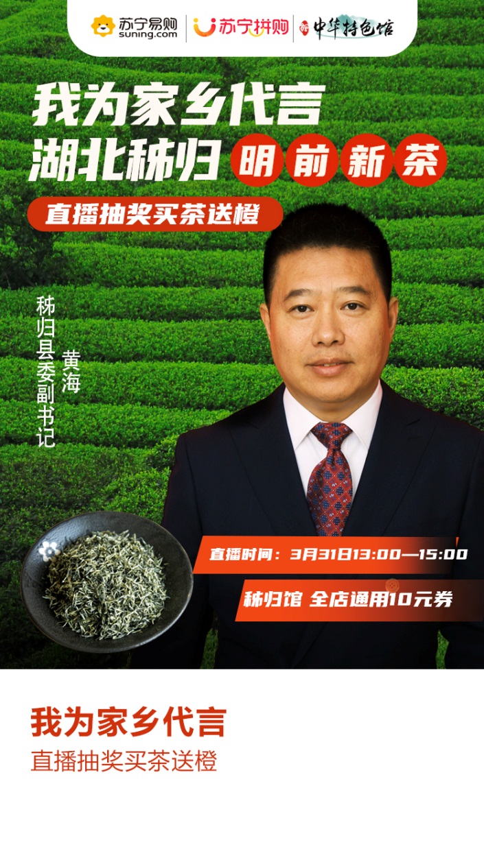 縣長直播帶貨已成風(fēng)潮,其中誕生了不少網(wǎng)紅案例。3月31日,蘇寧拼購將邀請湖北秭歸縣縣委副書記黃海亮相直播,為全網(wǎng)消費(fèi)者帶來地道的秭歸農(nóng)產(chǎn)品。
