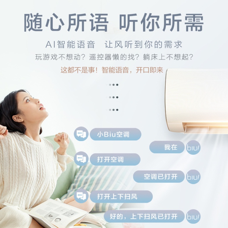 此外,小Biu空調(diào)Max搭載了AI智能語音控制技術(shù),你只需要對(duì)它說“小Biu空調(diào)”將其喚醒,就能實(shí)現(xiàn)開機(jī)關(guān)機(jī)、模式切換、調(diào)節(jié)溫度等操作,實(shí)現(xiàn)了真正的智能語音操控。同時(shí),小Biu空調(diào)Max采用行業(yè)一流的海立壓縮機(jī),并具有高溫自清潔、APP遠(yuǎn)程控制、急速冷暖等亮點(diǎn)功能,提供整機(jī)6年、壓縮機(jī)10年保修的服務(wù)。