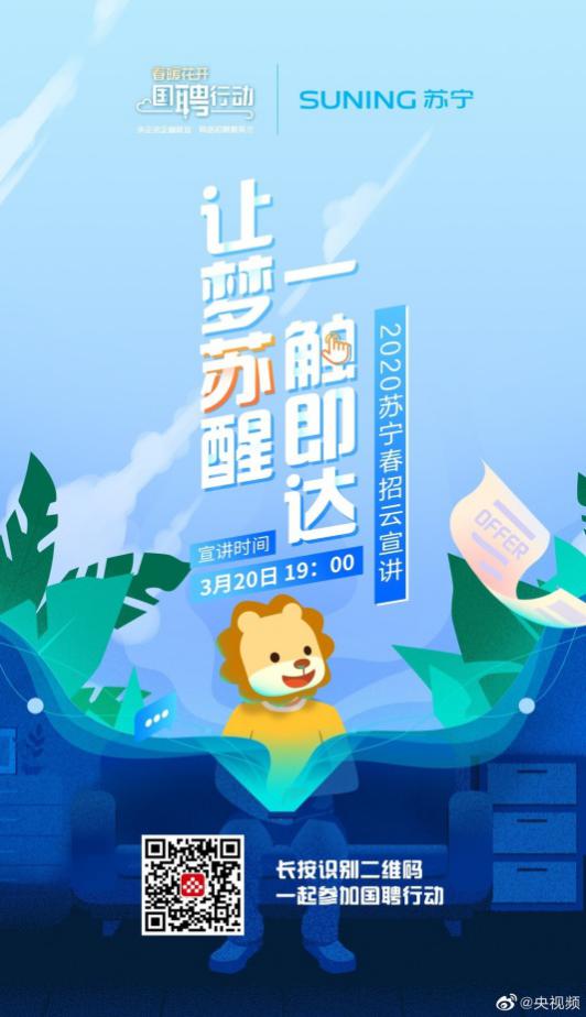 作為與民生、就業(yè)密切相關(guān)的大型零售企業(yè),蘇寧早在2月8日便啟動(dòng)了無(wú)接觸春招,3月20日,蘇寧更是通過(guò)央視頻國(guó)聘行動(dòng)開(kāi)啟線上宣講。目前,線上面試與offer發(fā)放正在持續(xù)進(jìn)行中。