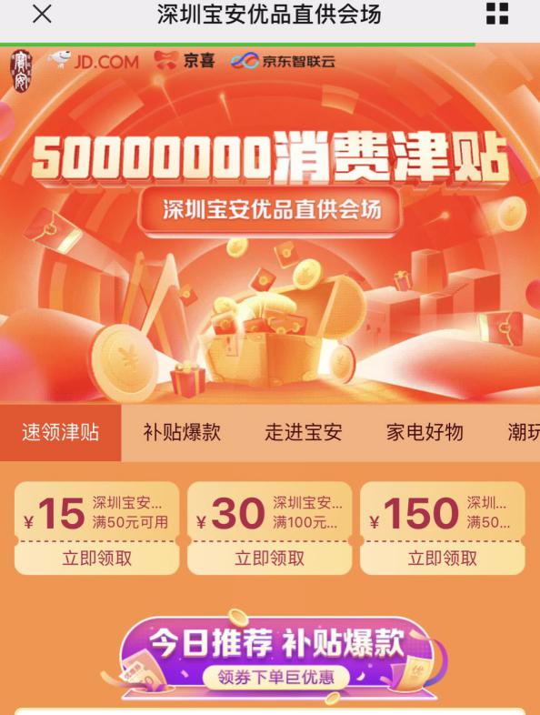見(jiàn)圳客戶(hù)端·深圳新聞網(wǎng)2020年4月15日訊 (記者田志強(qiáng) 通訊員鄧睆)4月14日,深圳市寶安區(qū)工業(yè)與信息化局與京東集團(tuán)簽訂 《寶安優(yōu)品消費(fèi)補(bǔ)貼合作協(xié)議》。協(xié)議指出,寶安區(qū)將通過(guò)京東主站和京東旗下社交電商平臺(tái)京喜為廣大消費(fèi)者提供總價(jià)值為5000萬(wàn)的消費(fèi)券,用戶(hù)購(gòu)買(mǎi)寶安區(qū)轄區(qū)內(nèi)企業(yè)制造的品質(zhì)好貨,可直享補(bǔ)貼優(yōu)惠。