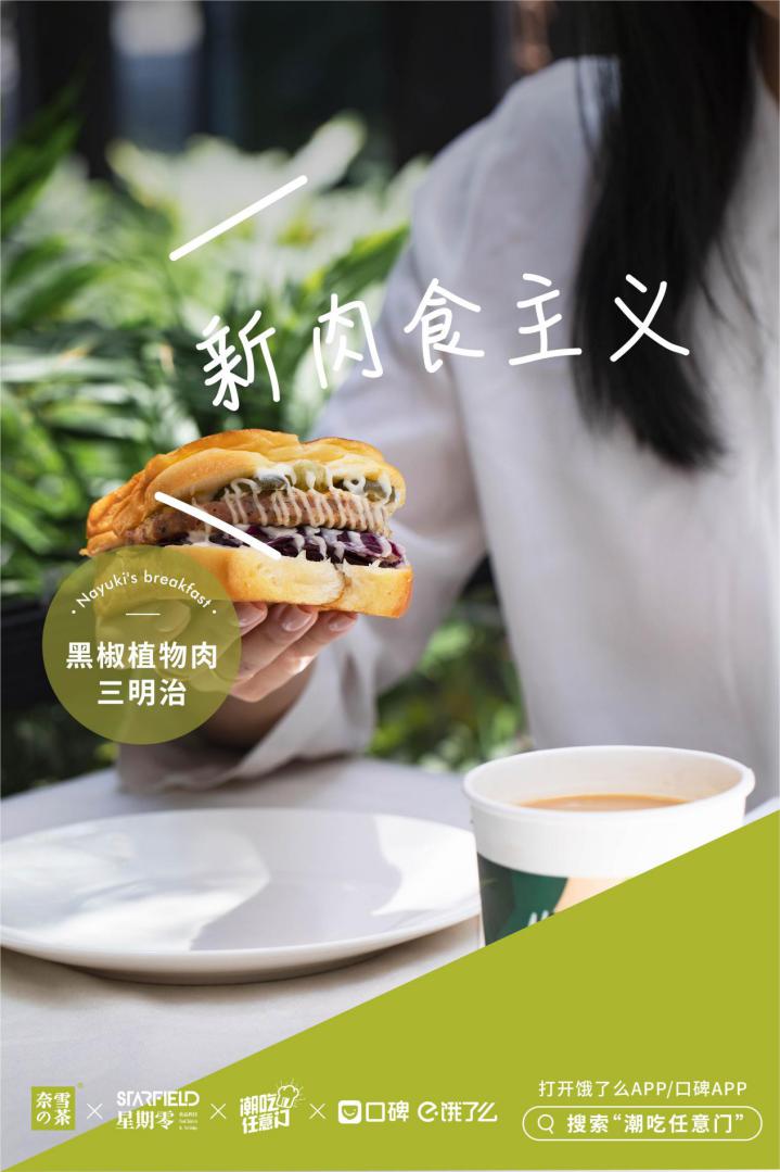 而在此次合作之前,星期零的產(chǎn)品也早已經(jīng)過了相當長時間的市場考驗。奈雪全國旗艦店夢工廠于2019年秋上線了三款植物肉產(chǎn)品,不到一小時便被搶購一空 ,這也促進了奈雪在潮吃任意門活動中增加至 9家店聯(lián)推黑椒植物肉三明治 。