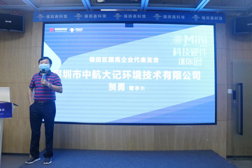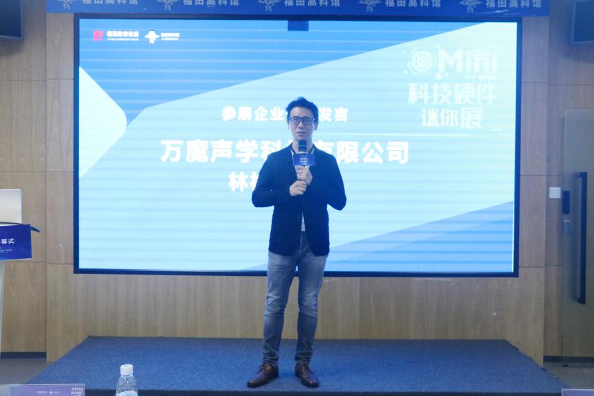 福田區(qū)歐陽(yáng)繪宇副區(qū)長(zhǎng)、福田區(qū)科技創(chuàng)新局張忠暉局長(zhǎng)、福田高科館尹輝館長(zhǎng)、深圳市中航大記環(huán)境技術(shù)有限公司賀勇董事長(zhǎng)、萬(wàn)魔聲學(xué)科技有限公司林柏青副總裁共同啟動(dòng)2020科技硬件迷你展。