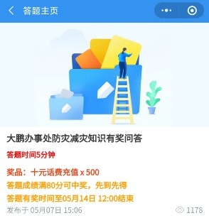 其組織開展的防災(zāi)減災(zāi)有獎(jiǎng)問(wèn)答活動(dòng)和轉(zhuǎn)發(fā)宣傳推文或宣傳小視頻到朋友圈打卡活動(dòng)十分受群眾歡迎,活動(dòng)發(fā)布當(dāng)天參與人數(shù)便已突破1000人,至今仍穩(wěn)步增長(zhǎng)中。