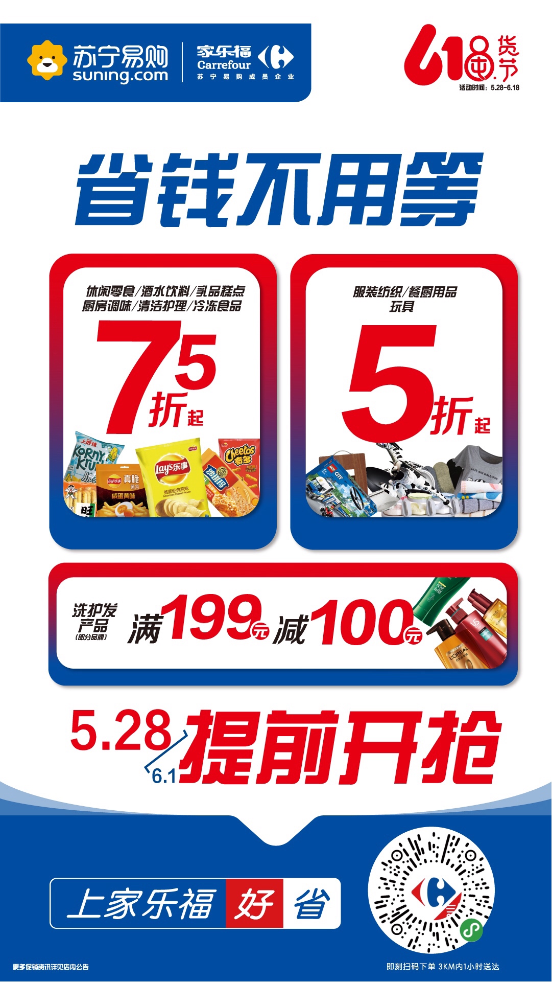 作為蘇寧陣營(yíng)中的排頭兵、蘇寧大快消產(chǎn)業(yè)的核心部分,家樂(lè)福率先出戰(zhàn)。為了給消費(fèi)者提供充足時(shí)間選擇心儀的商品,家樂(lè)福618囤貨節(jié)即將拉開帷幕,讓消費(fèi)者盡享“618省錢不用等”的升級(jí)購(gòu)物體驗(yàn)。