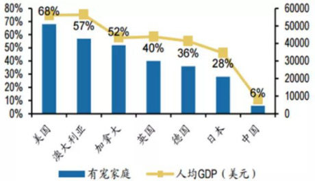 有資料顯示,當(dāng)一個(gè)國家的人均GDP達(dá)到8,000美元,寵物產(chǎn)業(yè)就會(huì)進(jìn)入高速發(fā)展階段,截止2016年,我國人均GDP剛步入8,000美元的行列,未來寵物產(chǎn)業(yè)市場前景廣闊。