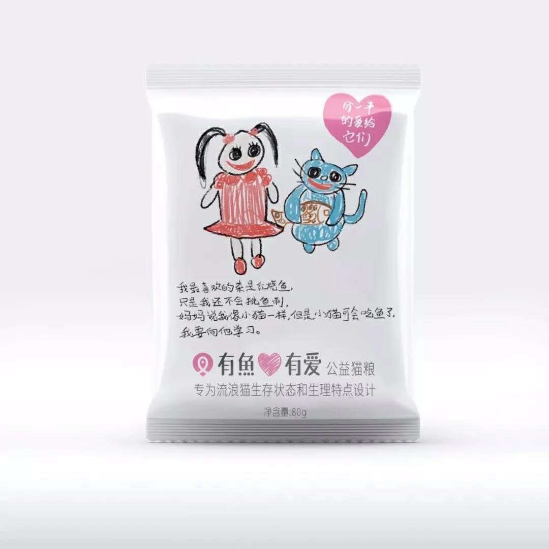 “感性”則代表了產(chǎn)品的溫度。在開發(fā)“有魚”主線品牌糧食開始,品牌就開始關(guān)注流浪貓,并在細(xì)致觀察和研究了流浪貓的生存環(huán)境、常見的健康問題之后,研發(fā)團(tuán)隊(duì)為流浪貓?zhí)貏e研發(fā)了“有魚有愛”公益貓糧,只免費(fèi)捐贈(zèng),非定價(jià)售賣。