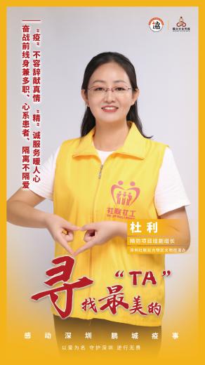 深圳社聯(lián)派駐光明區(qū)光明街道精防社工杜利,在一線戰(zhàn)疫中身兼多職、心系患者、隔離不隔愛。她不僅在深圳新冠肺炎確診數(shù)直線上升的敏感期,挺身而出主動(dòng)為康復(fù)者親赴醫(yī)院領(lǐng)藥并送“愛”上門;白天更是積極開展社區(qū)巡查,幫助服務(wù)對象積極面對疫情;晚上再與防疫人員輪班值守、外出巡防,督促商戶們做好防護(hù)工作。
