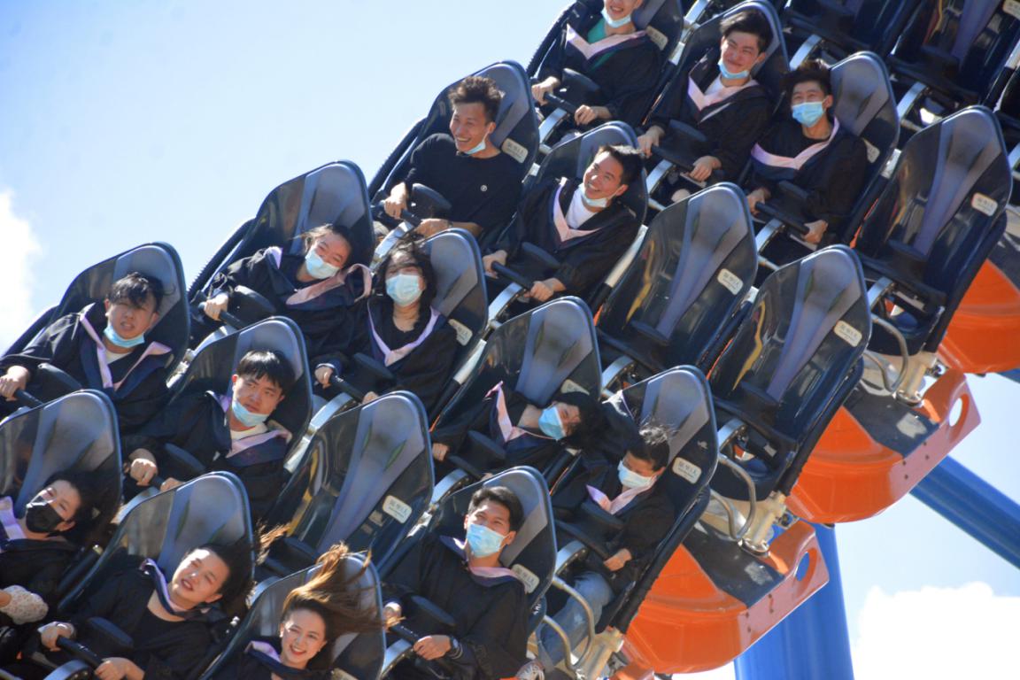 伴隨著感人的合影儀式,20多名畢業(yè)生隨著起伏跌宕的雪域雄鷹過山車開啟了“上天入地”挑戰(zhàn)體驗,為畢業(yè)季添上濃墨重彩的一筆回憶。