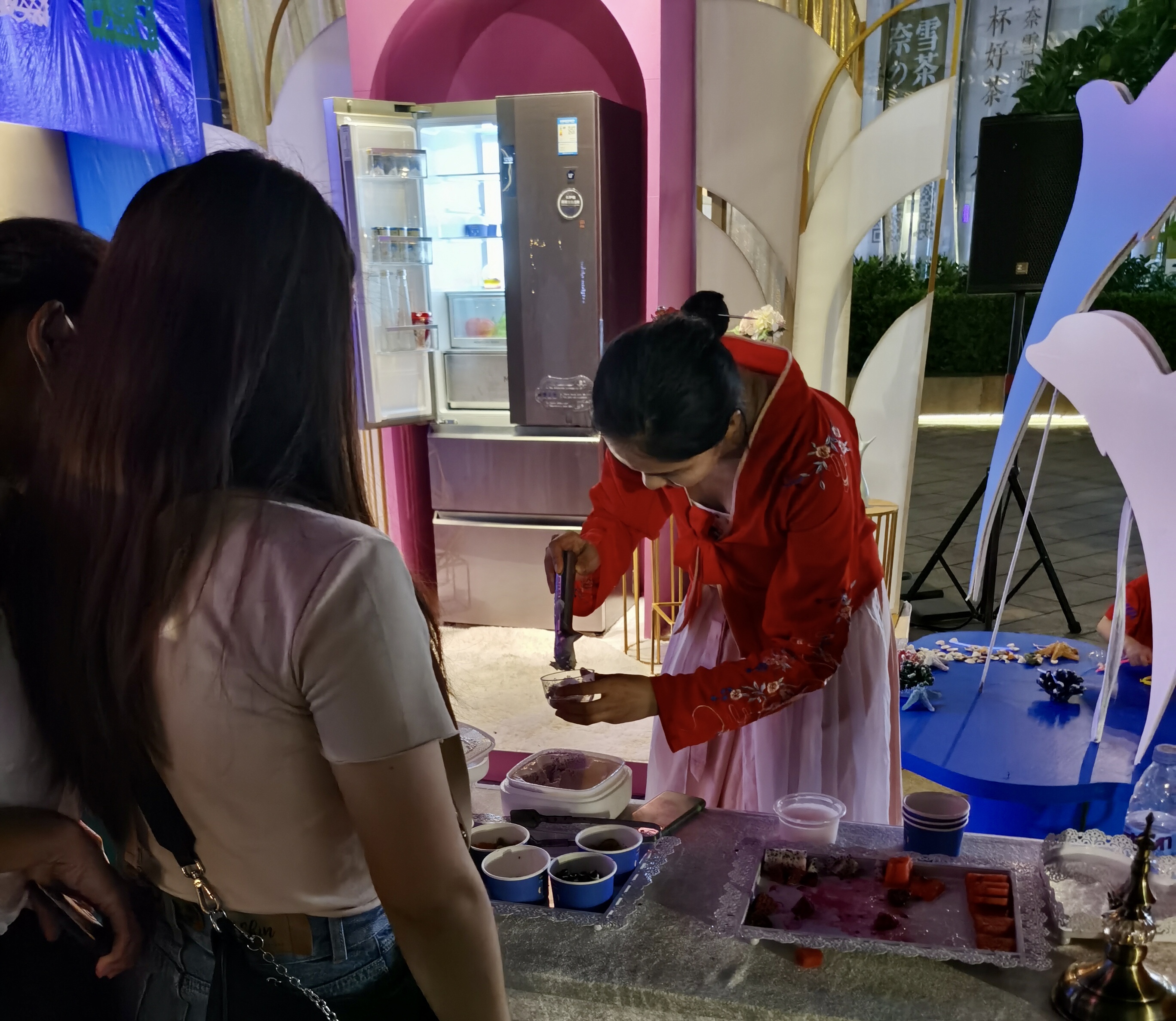 不得不提的是,還有“穿越”過(guò)來(lái)的小姐姐來(lái)到卡薩帝冰箱前免費(fèi)派發(fā)彩虹冰涼粉,引來(lái)大朋友小朋友們紛紛拿起手機(jī)拍攝下最美的瞬間!