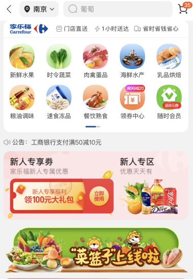 自8月8日起,消費(fèi)者通過蘇寧易購 APP、家樂福微信小程序等平臺(tái),可以一鍵購買米面糧油、乳品烘焙、水產(chǎn)肉類、蔬菜水果等食物,SKU超過700個(gè)。很快,菜籃子也將在蘇寧小店APP上線。門店三公里范圍內(nèi)的訂單,最快25分鐘便可送到家。目前,菜籃子已經(jīng)覆蓋了51座城市的215家家樂福門店。