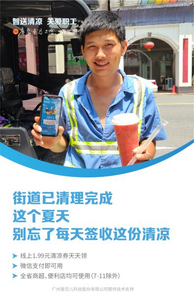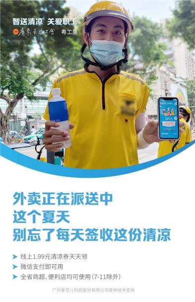 為了更好地服務戶外工作者,并結(jié)合當前常態(tài)化疫情防控形式,廣東省總工會推出“夏季清涼線上領工會福利爽一夏”活動,將傳統(tǒng)的“送清涼”活動升級成線上移動互聯(lián)網(wǎng)的“智送清涼”模式,針對環(huán)衛(wèi)、快遞、外賣三個行業(yè)的戶外工作者,從7月30日到9月30日,給他們發(fā)放防暑降溫等飲品。