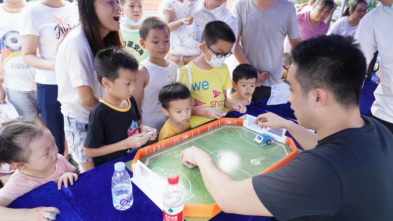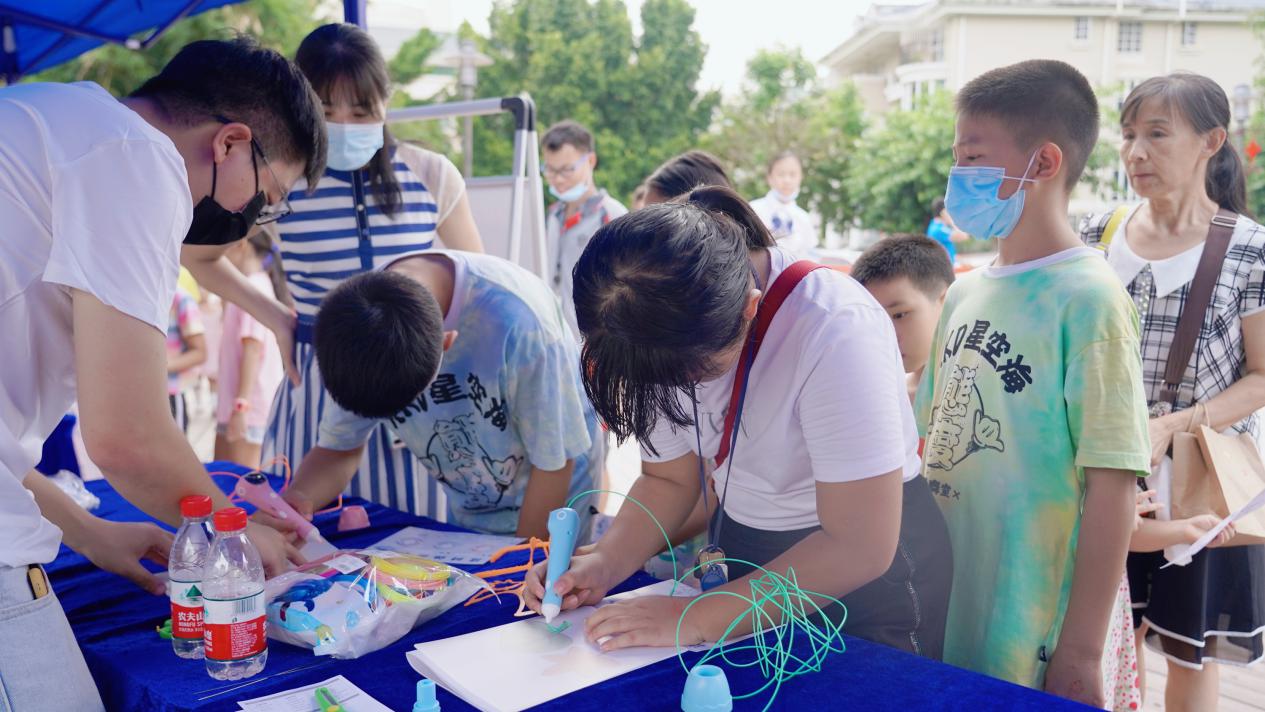 此次科普活動寓教于樂,設置了“意念控制蜘蛛”“科學干冰秀”“怒發(fā)沖冠”“3D打印筆體驗”“遙控機器人足球賽”五個趣味性、互動性的科普游戲。轄區(qū)居民通過切身參與游戲,切實掌握科學知識。