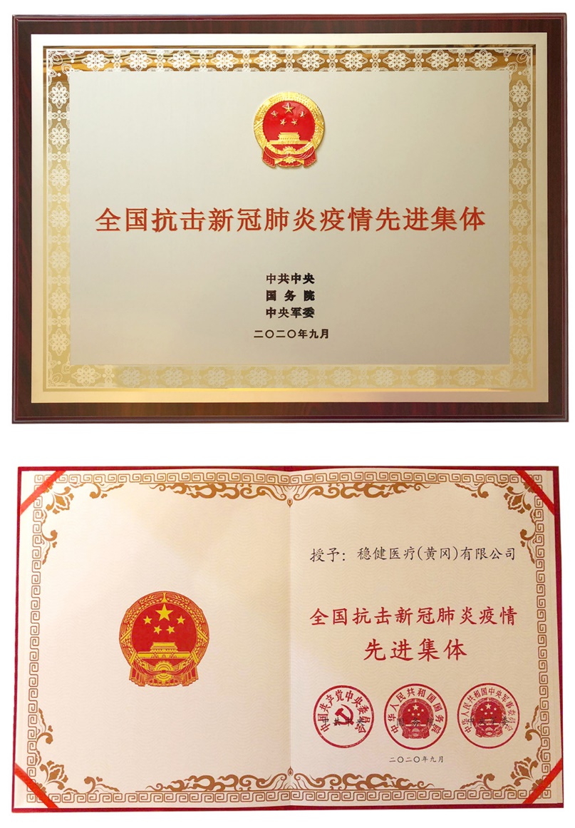 見(jiàn)圳客戶(hù)端·深圳新聞網(wǎng)2020年9月10日訊 近日,全國(guó)抗擊新冠肺炎疫情表彰大會(huì)在北京人民大會(huì)堂隆重舉行。大會(huì)對(duì)全國(guó)抗擊新冠肺炎疫情先進(jìn)個(gè)人、先進(jìn)集體,全國(guó)優(yōu)秀共產(chǎn)黨員、全國(guó)先進(jìn)基層黨組織進(jìn)行了表彰。穩(wěn)健醫(yī)療(黃岡)有限公司榮獲“全國(guó)抗擊新冠肺炎疫情先進(jìn)集體”稱(chēng)號(hào)。