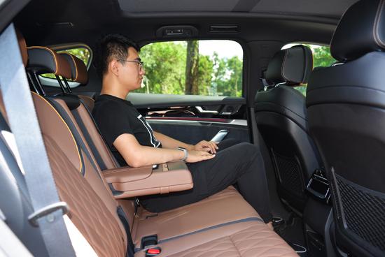 從車外進入車內(nèi),打開門第一眼看到的就是這個寬大且舒適的真皮座椅,這也是凸顯內(nèi)飾豪華感的重要部分。偏向于運動風(fēng)格的座椅對于身體的支撐非常到位,從臀部到肩膀都能提供良好的支撐,前排還提供了可伸縮的腿部支撐設(shè)計,讓你久坐不累,這是對一臺豪華車座椅的基本要求。