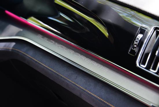 中控臺使用了搪塑、鋼琴烤漆、啞光鍍鉻、金屬拉絲、超纖高檔類麂皮五種材質(zhì)進行拼接,每一種材質(zhì)的大小和明暗都經(jīng)過細(xì)致的考量,就連用的金色縫線也是經(jīng)過多輪顏色比對,以達到內(nèi)飾整體色調(diào)與設(shè)計的完美統(tǒng)一。