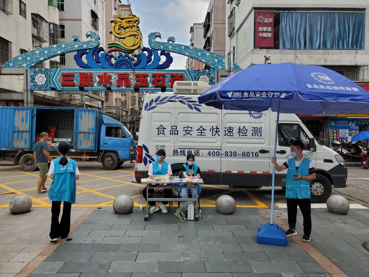 “你送我檢”免費(fèi)檢測是深圳市極具特色的“快檢”服務(wù)。街道食品安全“快檢車”來到活動現(xiàn)場為轄區(qū)居民提供現(xiàn)場快速檢測服務(wù),同時宣傳街道食品智能便民送檢柜的放置地點(diǎn),讓農(nóng)殘檢測真正直接走入群眾,為居民帶來方便。