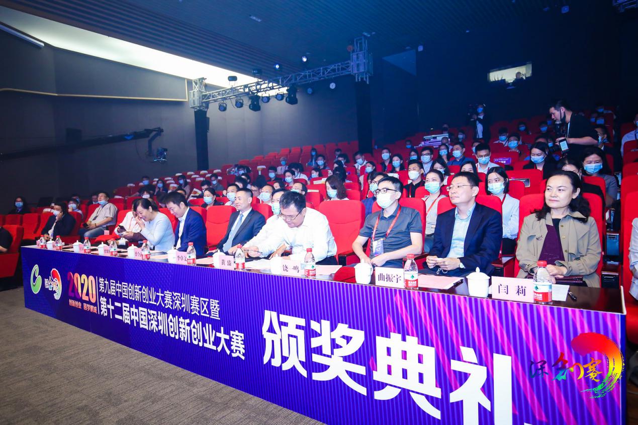 頒獎(jiǎng)典禮在上午10點(diǎn)半正式開(kāi)始,深圳市政府領(lǐng)導(dǎo)、深圳市科技創(chuàng)新委員會(huì)副主任黃臻、共青團(tuán)深圳市委員會(huì)組織與宣傳部副部長(zhǎng)饒一鳴、招商銀行深圳分行副行長(zhǎng)曾令武等多位領(lǐng)導(dǎo)出席,第十二屆中國(guó)深圳創(chuàng)新創(chuàng)業(yè)大賽六大行業(yè)合計(jì)180位獲獎(jiǎng)選手參加典禮。