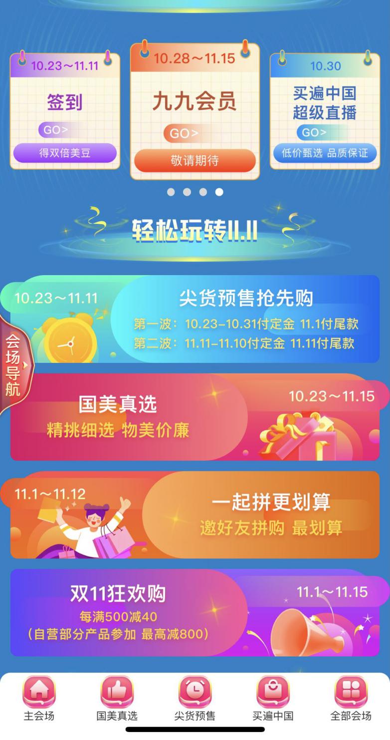 10月28日至11月25日,國美九九會(huì)員上線,只需九塊九,羊毛就能薅到手;10月30日,“買遍中國”直播杭州站開播,西湖美食便宜還好吃;11月1日-11月3日大促高峰啟動(dòng),各種紅包雨抽獎(jiǎng)嗨不停;11月4日至11月6日,萬人直播,空前視覺盛宴奉上;11月7日至11月10日,買遍歐洲直播活動(dòng),全球好物任你挑;后續(xù)還有返場福利等你來拿!