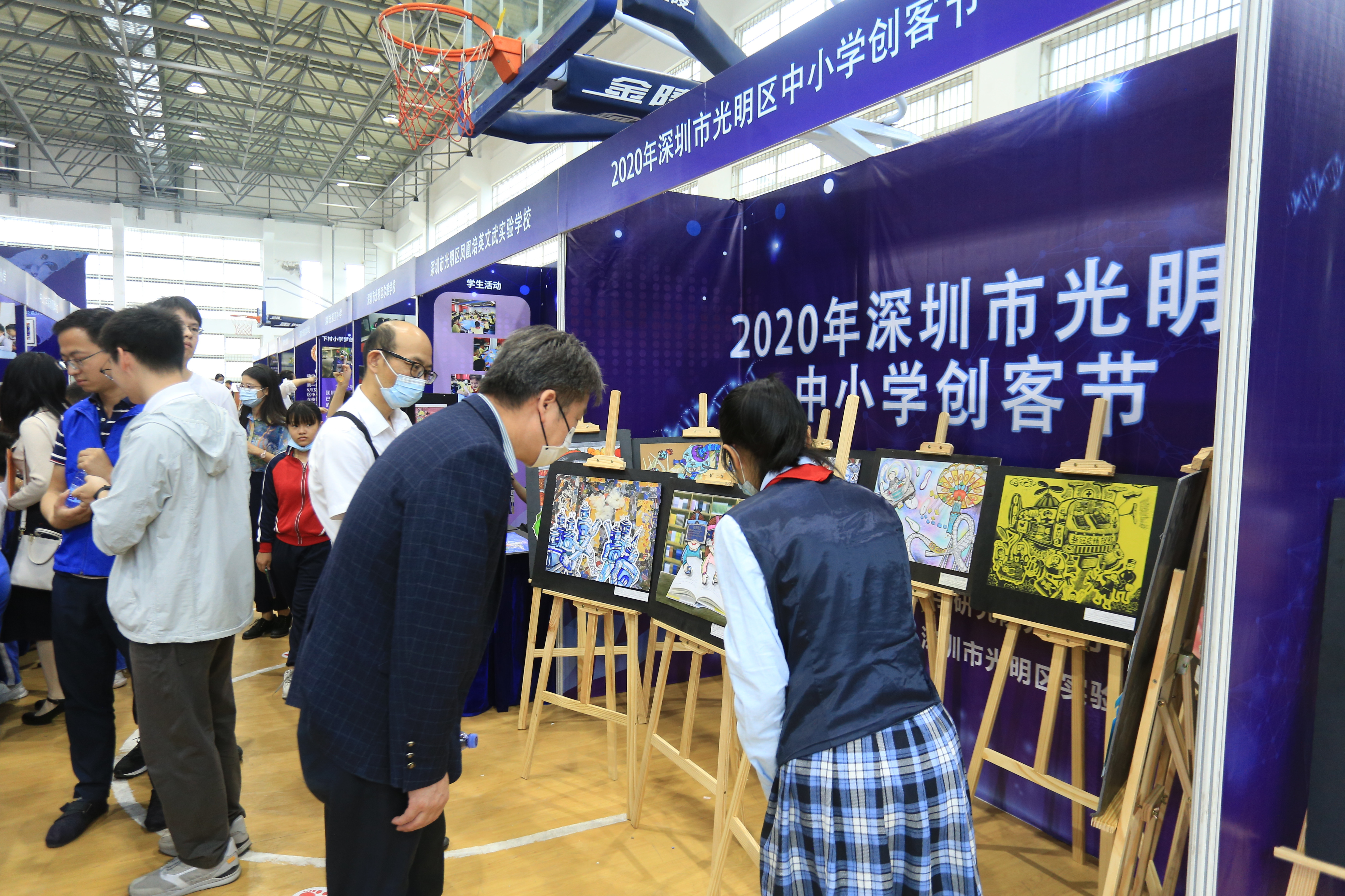在各位嘉賓共同見證下,“2020年深圳市光明區(qū)中小學創(chuàng)客節(jié)”正式啟動。現(xiàn)場評選出了“最佳人氣展位”、“最具創(chuàng)意展位”和“優(yōu)秀展位”等各類獎項。而另一邊的現(xiàn)場制作賽區(qū),也開始了緊張刺激的創(chuàng)客綜合能力競技大賽,經過190分鐘的制作馬拉松,各校選手發(fā)揮聰明才智,將紙板等構件拼裝成一組組富有創(chuàng)意性的科學作品,在下午三個小時路演評選,借助畫圖和多媒體演示的形式向評委專家細致描述各自的創(chuàng)意,現(xiàn)場角逐出了中小學組一二三等獎項。