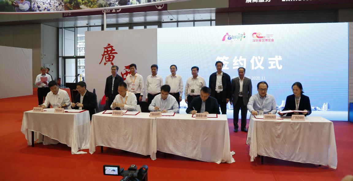 在第三屆深圳餐飲博覽會廣西館開館及項目簽約儀式上,順豐集團——深圳市豐農(nóng)科技有限公司、深圳市京基智農(nóng)時代股份有限公司、新希望六合股份有限公司等單位與廣西壯族自治區(qū)農(nóng)業(yè)農(nóng)村廳達成了戰(zhàn)略合作共識,深圳寶能集團與自治區(qū)供銷社達成了戰(zhàn)略合作共識。其中,自治區(qū)農(nóng)業(yè)農(nóng)村廳與深圳市豐農(nóng)科技有限公司簽訂《品牌農(nóng)產(chǎn)品全產(chǎn)業(yè)供應鏈戰(zhàn)略合作協(xié)議書》,重點是就“廣西好嘢”品牌農(nóng)產(chǎn)品全產(chǎn)業(yè)供應鏈升級開展合作,豐農(nóng)科技將在廣西特色農(nóng)產(chǎn)品優(yōu)勢區(qū)投資建建設17個順豐速運預處理中心,搭建三級物流及冷鏈體系體系;與深圳市京基智農(nóng)時代股份有限公司就共同推進廣西生豬產(chǎn)業(yè)高質(zhì)量發(fā)展體系建設簽訂 《戰(zhàn)略合作框架協(xié)議》,協(xié)同推進年出欄500萬頭生豬全產(chǎn)業(yè)鏈,構(gòu)建現(xiàn)代加工流通體系;與新希望六和股份有限公司簽訂《“鄉(xiāng)村振興”生態(tài)循環(huán)農(nóng)業(yè)戰(zhàn)略合作框架協(xié)議》推進1800萬頭生豬養(yǎng)殖全產(chǎn)業(yè)鏈項目和數(shù)字農(nóng)業(yè)產(chǎn)業(yè)園建設,總投資200億元。深圳寶能集團與自治區(qū)供銷社就廣西(寶能)大生鮮流通平臺及供銷冷鏈網(wǎng)絡建設簽訂 《戰(zhàn)略合作協(xié)議》。同時,深圳韓山文化發(fā)展有限公司與廣西宏華生物實業(yè)股份有限公司簽署約3000萬元的合作協(xié)議,廣州市光之彩候鳥超市連鎖有限公司與玉林老芳食品有限公司簽署5000萬的購銷協(xié)議,廣東潤華商業(yè)有限公司與北海福星商貿(mào)有限公司簽定1000萬的采購協(xié)議,廣東東莞市順大廚餐飲服務有限公司與廣西武鳴綠世界生態(tài)農(nóng)業(yè)投資有限公司簽訂1600萬采購協(xié)議。