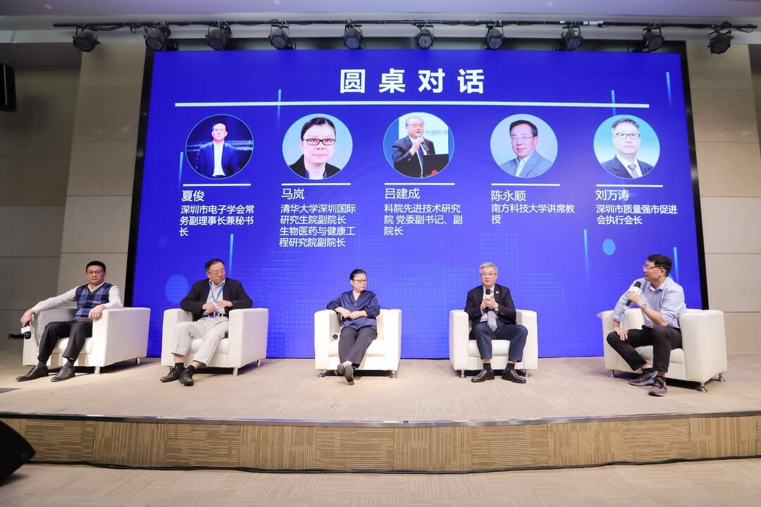 在圓桌對話環(huán)節(jié),深圳市電子學(xué)會常務(wù)副理事長兼秘書長夏俊、深圳市質(zhì)量強市促進會執(zhí)行會長劉萬濤等嘉賓以“學(xué)科發(fā)展、科技進步、人才成長和科學(xué)普及等方面的作用”為主題展開交流與討論。